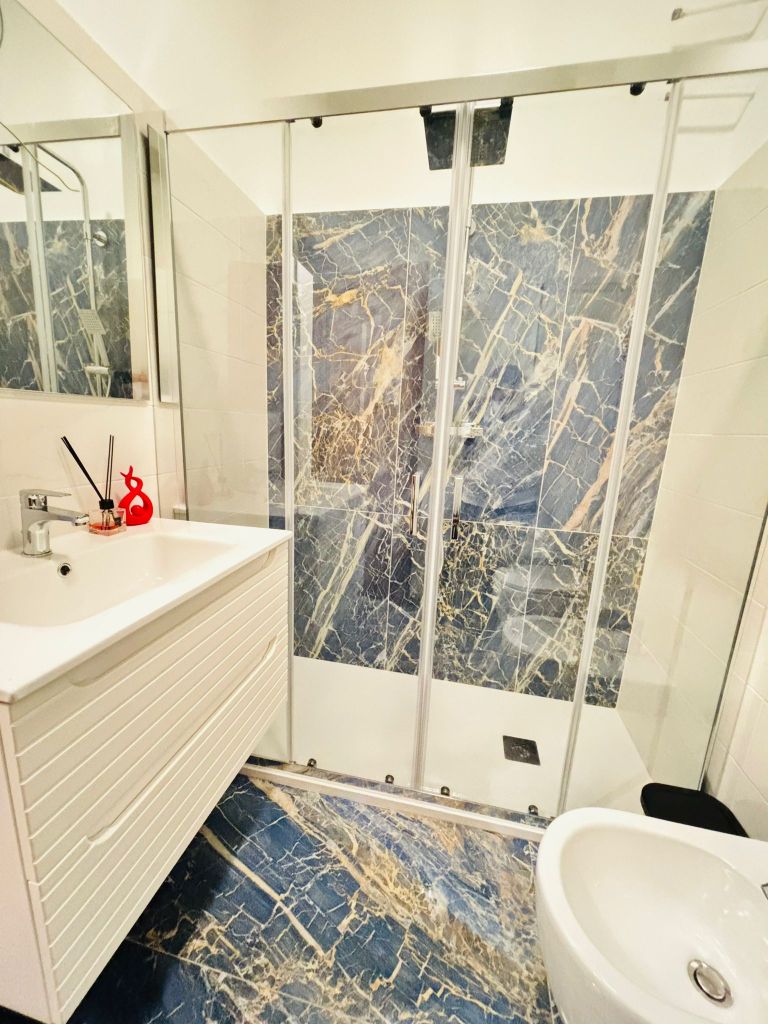 -Description: one bedroom with king size bed, one renovated bathroom, a living room area (included sofa bed), nice kitchenette and small garden at the back of the apartment.